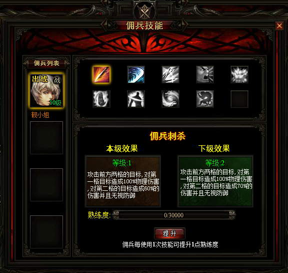 u 佣兵系统包括装备升级、装备强化、装备宝石、魔法神石、培养、技能、幻化等众多玩法。
