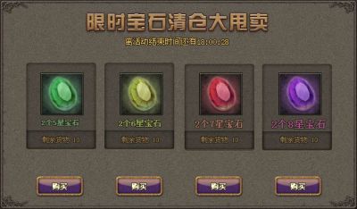 l 活动时间内,宝石将以优惠的价格倾销大甩卖。