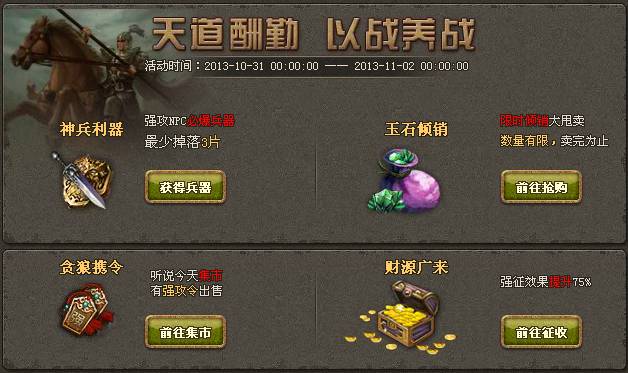a) 活动期间,强攻NPC必掉兵器碎片(仅限有几率掉落兵器的NPC)。