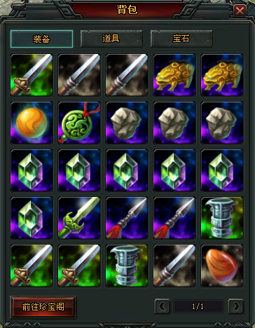 背包主要储存装备、宝石、道具等,除装备外,其他物品均可叠加显示。