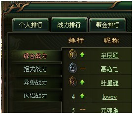 (3)主界面左上角人物头像上方主战力悬停提示界面中加入人物、侠侣、异兽、招式战力相关描述。