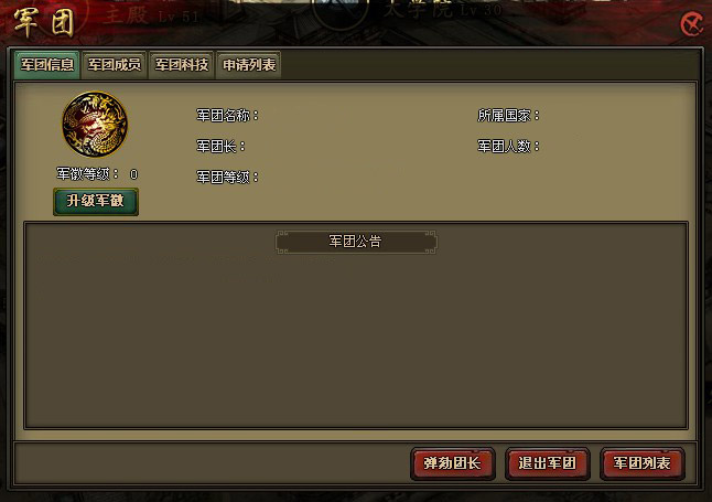 玩家达到一定等级并且选择国家之后,就可以建立或者加入一个军团。军团必须为同属一个国家的玩家组建。