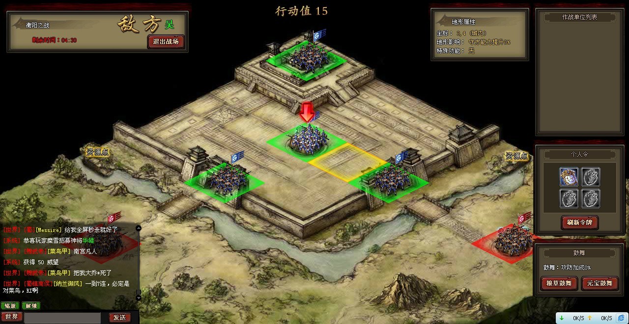 4.攻城战战场内分为10*10个格子,玩家需要消耗体力值移动到附近的格子内,体力值会随时间恢复。