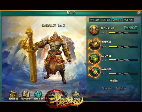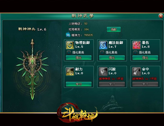 天真的围观群众们,不会真以为战神就天生神力这么简单吧?其实,除了战神属性加成之外,在爱奇艺《斗破乾坤》中,帮会战神还藏有绝密战神武学!当战神达到一定等级就能激活战神武学。值得注意的是,不同等级还能开放不同的天神技能哦,当然大部分技能还可以继续进行升级!