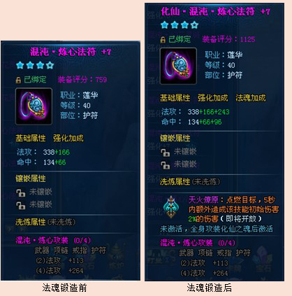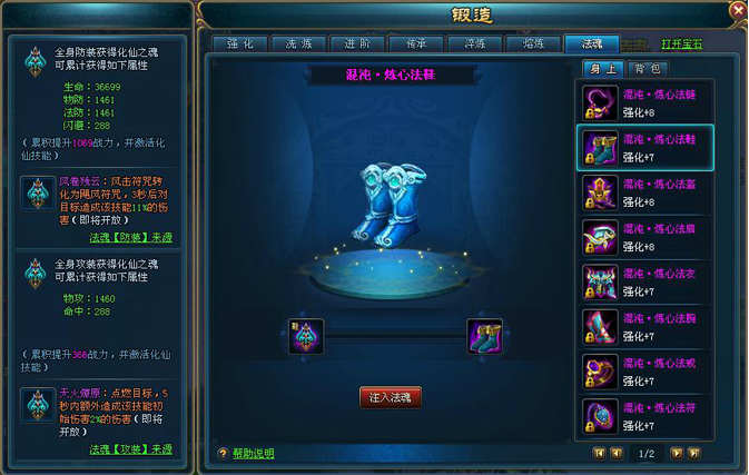 2、全身防装或攻装都注入法魂后,可激活法魂技能效果