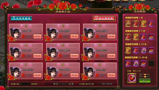 第十一到五十名 | 装备强化石*20,技能书礼盒*2, 玫瑰·白头之恋*1 |