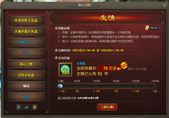 团购活动定时开启,活动时间等机制和现在的精彩活动相同