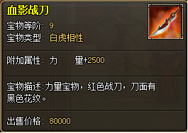 Ø 血影战刀:力量宝物,红色战刀,刀面有黑色花纹。