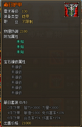 2. 蔽日套装为130级装备。