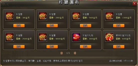 活动内容:活动时间内玩家可以使用礼券或金币在活动界面购买珍宝匣,使用珍宝匣以后有几率获得摸金符、神马鞭、金魂、经验卡、珍宝符、银币等!活动时间仅有3天,错过机会不再,赶快行动起来,江山美人尽如怀中!