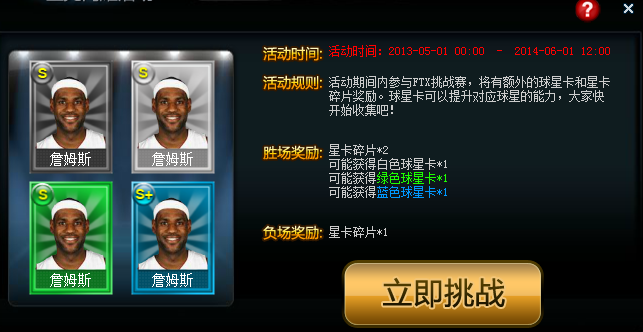 活动规则:活动期间参与FTX挑战赛,将有额外的球星卡和球星卡碎片奖励,球星卡可以对应球星的能力,大家快开始收集吧!