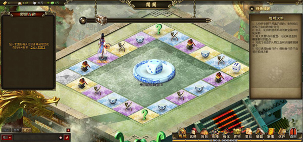其次是闯关系统,爱奇艺《龙将2》的闯关地图是一个环形的地图,玩家投掷骰子,根据骰子指示的数字在地图上挪动步数,进而触发随机事件。有些是遇到神秘小怪或者神秘BOSS,击杀小怪和BOSS之后可以得到相应奖励,有些则是对酒、强化装备的任务,RP好的玩家如果踩中了图标是骰子的那一格,还能获得额外的投点次数哦!在有限的投点次数内,走完地图的环数越多,玩家可以得到的奖励也将越丰富!