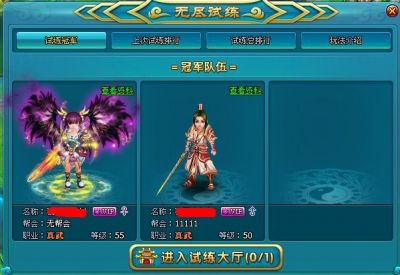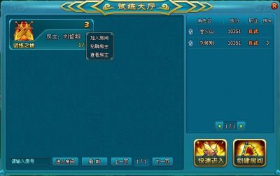 按钮,进入试练大厅,在试练大厅可单击房间在弹出来的选项中选择进入房间、私聊房主、查看房主。