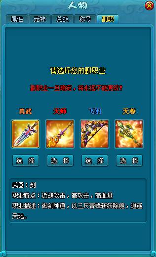 3. 选择副职后,玩家可以和主职进行变换,每次职业变换需要冷却一定时间,可以花费元宝消除冷却时间。