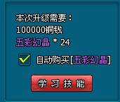 (3)武魂技能可升级,玩家可以继续通过学习技能来提升技能等级,提升武魄技等级需消耗铜钱和“五彩幻晶”道具(商城购买获得),提升武魄技等级能够大幅增加技能效果。