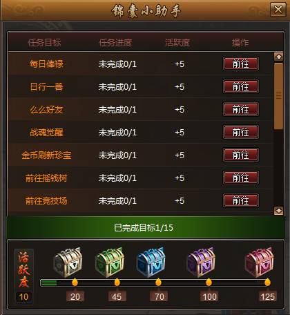 c) 玩家点击前往按钮即可自动前往相应模块,完成相应任务目标后提升玩家活跃度会得到提升。