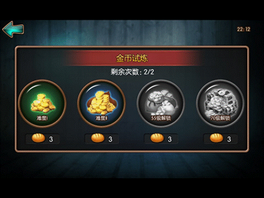 2. 每天可进行5次金币试炼,每天凌晨5点进行次数重置。