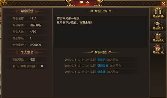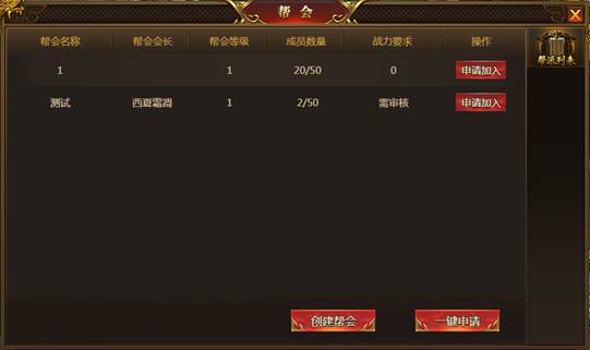 等级到达100级可开启帮会系统,帮会系统是游戏中很重要的一个社交系统,玩家可自己创建帮派,也可加入别人的帮派,加入帮会之后玩家就再也不是一个人在游戏了。玩家可以在帮会里找到志同道合的朋友组队一起去刷怪了。加入帮派还有很多丰厚的福利。