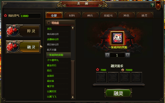 粹灵可以从不需要的道具身上粹取灵气,融灵则通过消耗灵气以及部分材料,来获得新的物品。