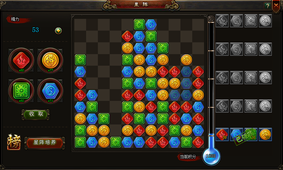 在星阵当中,可以点击相连的3个或以上相同颜色的碎片,点击后该区域碎片消除,获得相应的星阵碎片和积分;