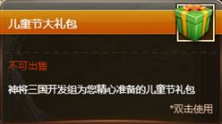 活动期间,登陆游戏即可免费领取“儿童节礼包”(每人只能领取一次)