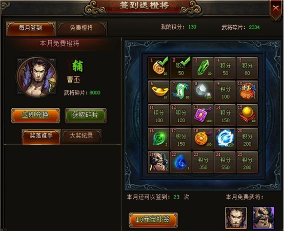 2、开放“每月签到送橙将”玩法,6月份武将“凌统”、“曹丕”进入每月签到免费武将中,