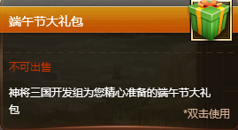 活动期间,登陆游戏即可免费领取“端午节礼包”(每人只能领取一次)