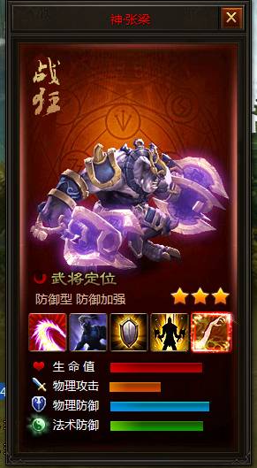 1、 新增神将“神·张梁”,使用道具“素书”开启。(天帝宝库中出售招募道具)