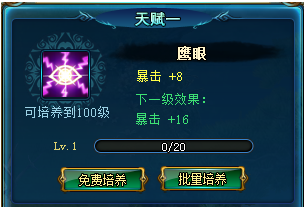 2.批量培养,优先消耗每日免费次数和天赋丹,再扣元宝。