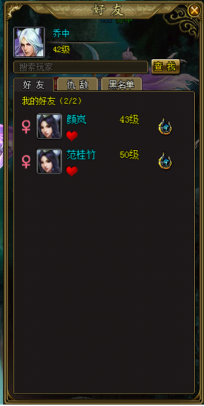 好友系统是玩家之间组建社交关系的重要途径之一。主要由好友、仇敌、黑名单3部分构成。