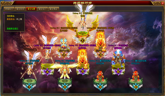 2. 跨服排行榜:星空仙兽榜、星空佳人榜、星空情圣榜