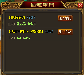 a. 拥有仙侣、情缘等级达到10级并且在背包中有【仙宅地契】×1即满足开启仙宅条件。