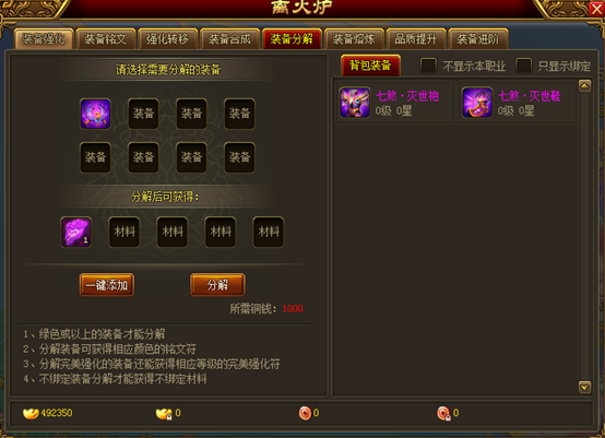 4、 分解不绑定的装备可以获得不绑定的材料。