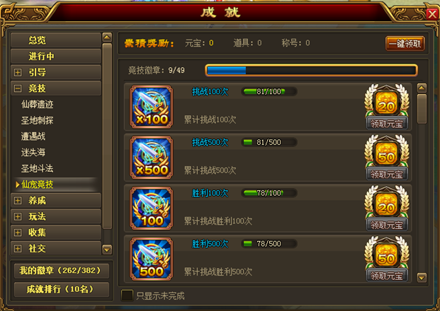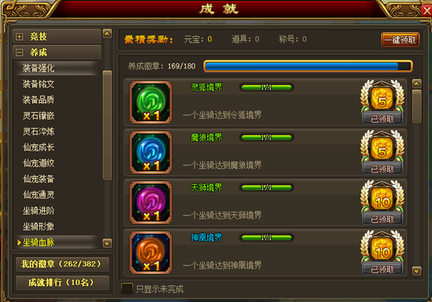 为回馈众修士,我们新增了坐骑血脉和仙宠竞技的相关成就,完成后将获得大量元宝奖励。可分别在『成就-竞技-仙宠竞技』界面和『成就-养成-坐骑血脉』界面查看成就信息。