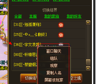 应众位修士要求,我们在烙纹列表中新增了操作框,只需点击其他角色的名字,就可以方便地进行窗口聊天、观察、屏蔽等操作。