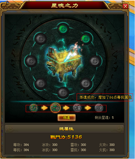 修士每次炼魂都将看到自己本次提升的属性数值。