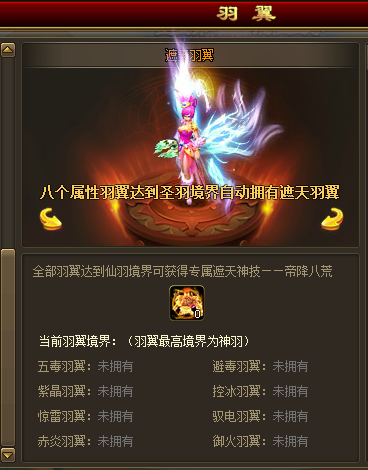 应众修士的要求,我们优化了遮天羽翼的界面,让大家方便地查询遮天羽翼所需的每一种羽翼的境界。
