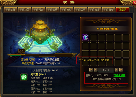 应众位修士要求,我们为家族万圣炉设置了每日元气转化上限,避免操作失误带来的损失。