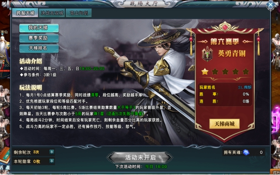 跨服pvp活动,游戏中期开放,全服玩家之间进行pk,提升段位,每月会有奖励结算并重置段位