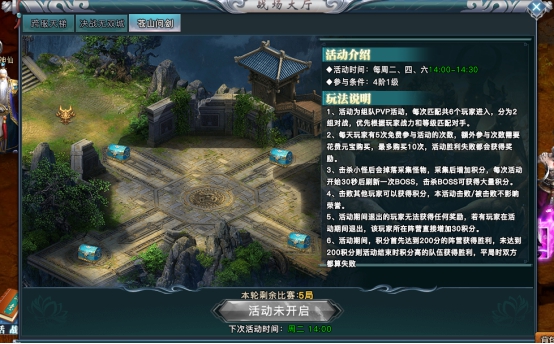 随机组队pvp活动,玩家随机分组进行pk,获得积分达到一定量后获胜,每次可获得礼包奖励