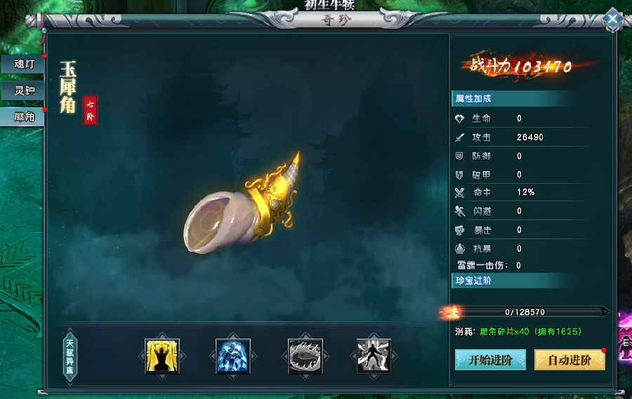 消耗犀角碎片可以提升玉犀角阶数