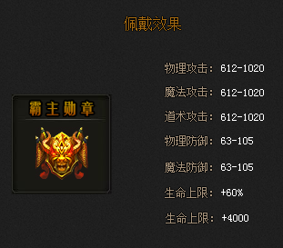 使用成就积分可以将屠龙勋章升级为霸主勋章,霸主勋章增加大量生命上限和攻击!