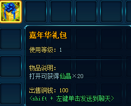 在活动期间内,每消费100元宝,可以领取一个嘉年华礼包,打开礼包必定获得仙晶*20,领取无上限哦。