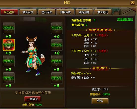 注:更换装备不影响强化等级哦!