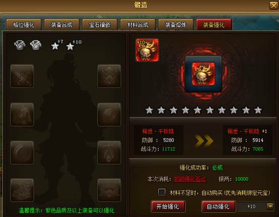 注:只有紫色品质及以上装备可以强化