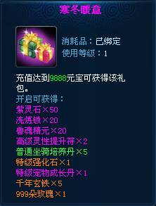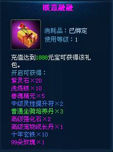 活动内容:活动期间,累积充值可获得对应礼包。