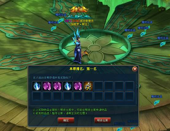 9.帮派积分排名为第1、第2、第3的帮派各得1份奖励