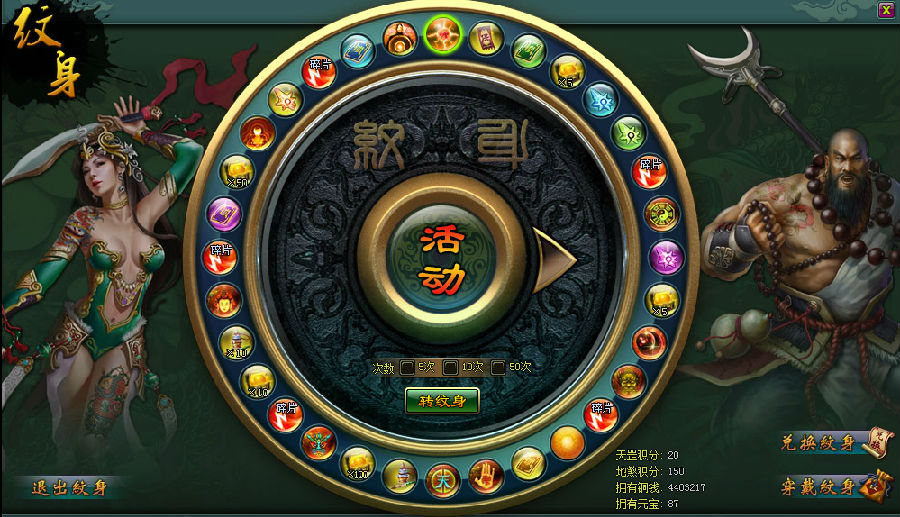 【活动内容】:活动期间,玩家可以在幸运转盘,转取各种珍贵稀罕道具,小投入,大回报哦!