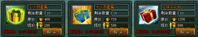 1、活动期间,玩家在限时折扣商店可购买各种限量圣诞套餐礼包;