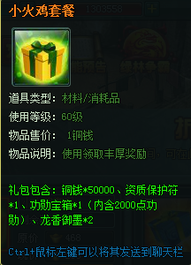 【小火鸡套餐】 | 铜钱*50000、资质保护符*1、两千功勋宝箱*1(内含2000点功勋)、龙香御墨*2 | 288 |